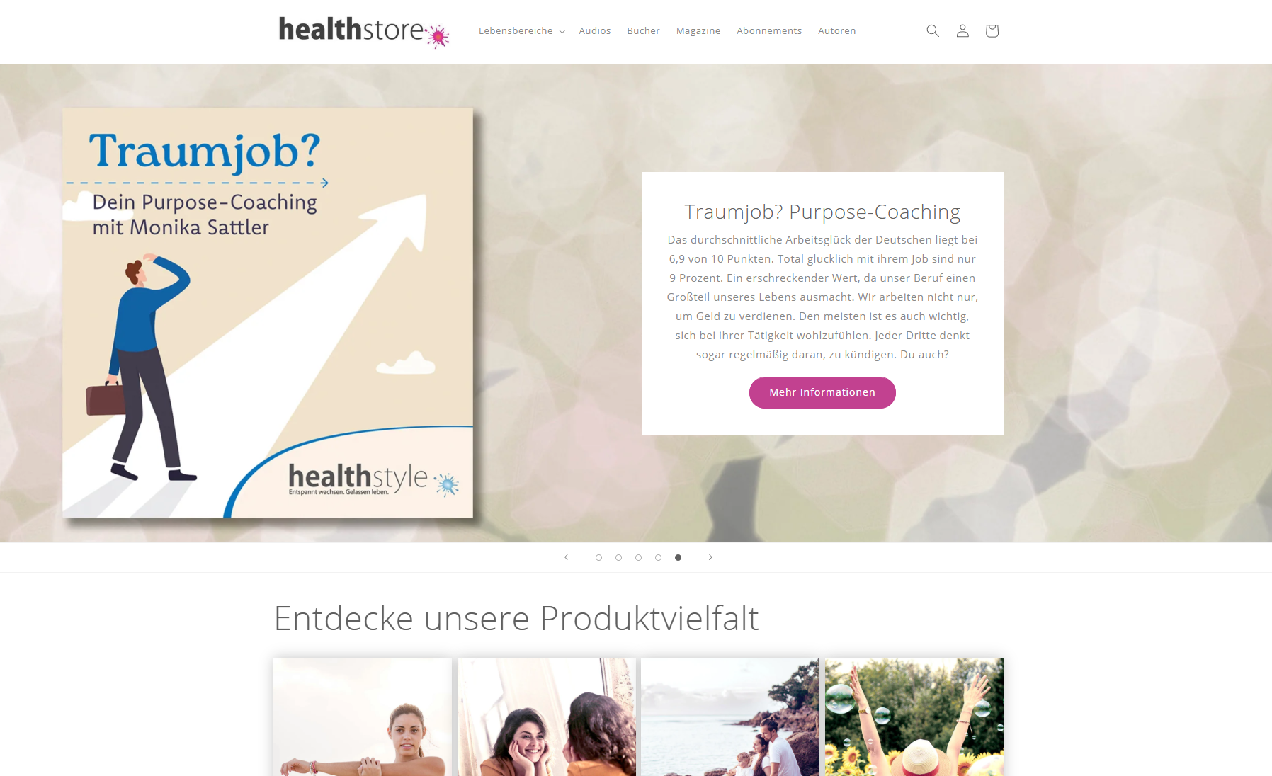 Print, Audio oder Digi­tal – Hier ist für jeden etwas dabei: aus­ge­wähl­te The­men aus den Berei­chen Natur­heil­kun­de, Prä­ven­ti­on und Coa­ching. Für Incen­ti­ves, Affi­lia­te-Pro­gram­me und z.B. Weih­nachts­ge­schen­ke erstel­len wir gern ein indi­vi­du­el­les Ange­bot.